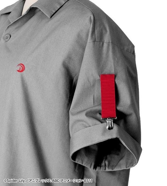 袖部分には、井ノ上たきなをイメージしたカラーのアームクリップをアクセントとして取り付け、胸元にはリコリスの校章を刺繍で再現しました。