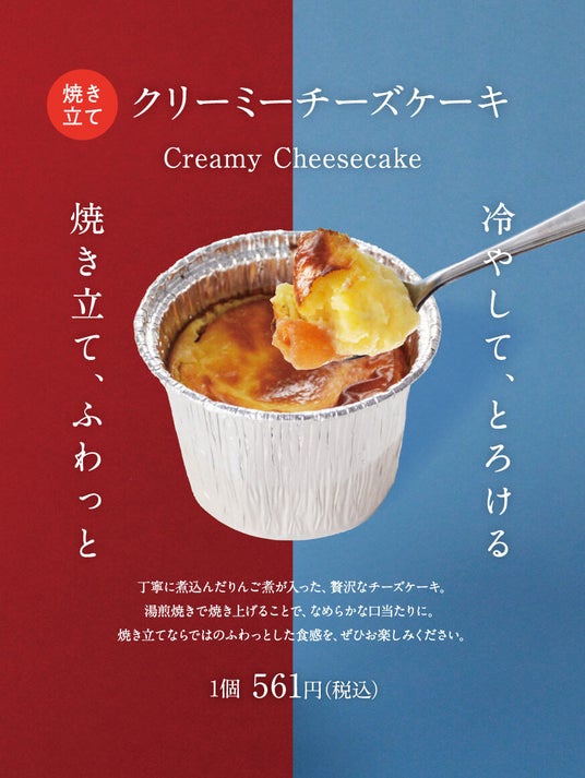 とろけるような口どけが魅力の「焼き立てクリーミーチーズケーキ」が、期間限定で登場。
