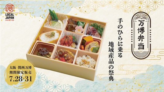大阪・関西万博で 2025年7月28日(月)から7月31日(木)まで開催される「Resolution of LOCAL JAPAN 展 ~地域が創る日本と地球のいのち輝く未来~」では、全国各地の自治体が誇る食材をふんだんに使った「万博弁当」を、期間限定で販売します。一折に込められているのは、まさに“地域産品の祭典”と呼ぶにふさわしい、各地の生産者たちが込める真心(いのち輝く食のストーリーと技術)です。