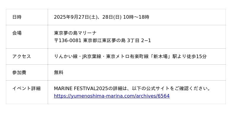 2025年9月27日(土)・28日(日) <開催場所:東京夢の島マリーナ>