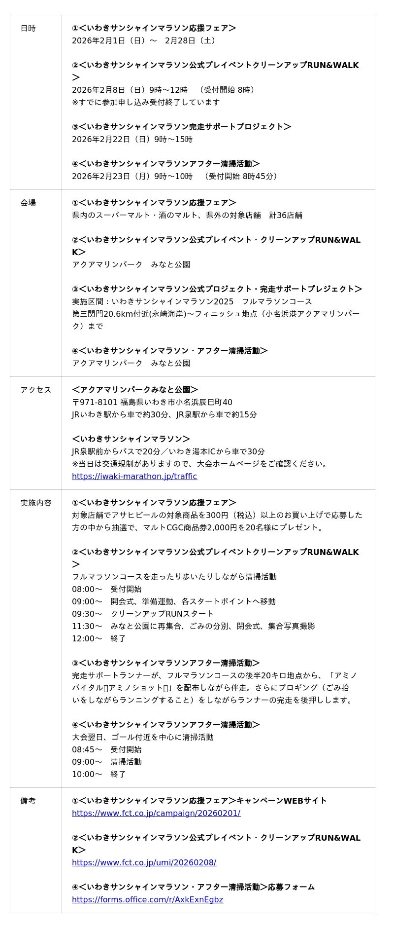 一般社団法人ふくしま海と緑のプロジェクトは、2026年2月1日(日)を皮切りに「いわきサンシャインマラソン」と連携したキャンペーンやイベントを展開していきます。これは、日本財団が推進する海洋ごみ対策プロジェクト「海と日本プロジェクト・CHANGE FOR THE BLUE」の一環で開催するものです。