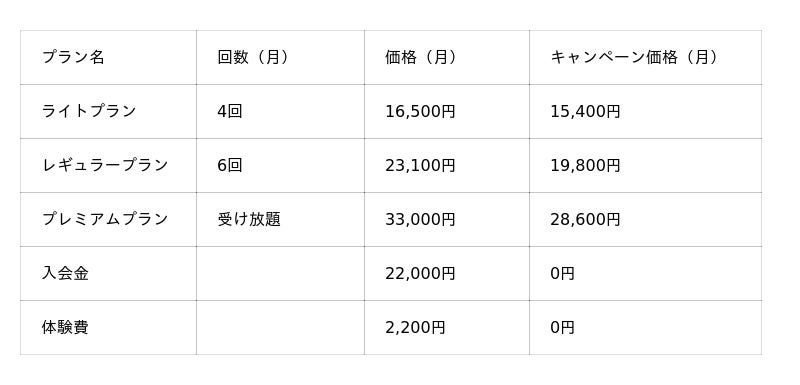 料金プラングループレッスン(月額プラン)