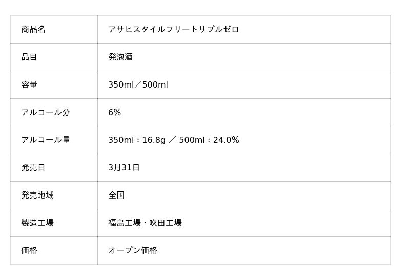 アサヒビール株式会社(本社 東京、社長 松山一雄)は、「スタイルフリー」ブランドから“プリン体0※1”“糖質0※2”“甘味料0※3”を実現した発泡酒『アサヒスタイルフリートリプルゼロ』を3月31日から発売します。