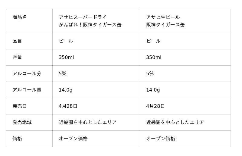 アサヒビール株式会社(本社 東京、社長 松山一雄)は、『アサヒスーパードライ がんばれ!阪神タイガース缶』と『アサヒ生ビール 阪神タイガース缶』を4月28日から近畿圏を中心としたエリアで数量限定発売します。