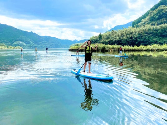 奥津湖SUP(サップ)体験近年人気が急上昇しているSUPを、奥津湖でも体験することができます。