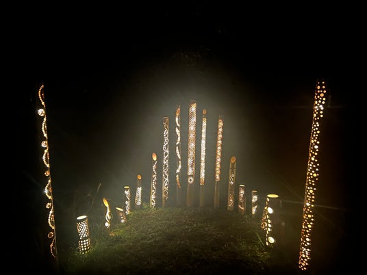 陽が落ちたら実際につくった竹灯籠に灯りをともし夕涼み。ひと夏の思い出にいかがでしょうか。