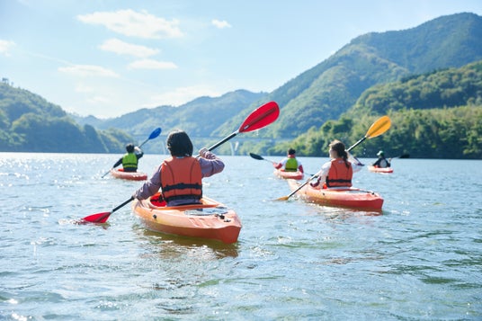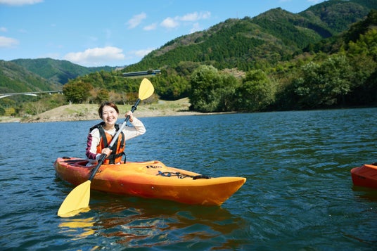 奥津湖カヤック体験イベントのメインとも呼ぶべきカヤックは、水面を間近に感じることができるのが最大の魅力。