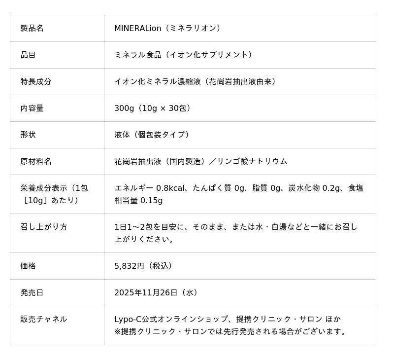 「未来の健康を、つくる。」というビジョンのもと、リポソーム型ビタミンCサプリメント「Lypo-C」シリーズを展開してきた株式会社スピック(神奈川県鎌倉市/代表取締役社長 芝田 崇行)は、“隠れ鉄不足”をはじめとする現代人のミネラルバランスの乱れに着目し、新たなミネラルサプリメントブランド「MINERALion(ミネラリオン)」を2025年11月26日(水)に発売いたします。