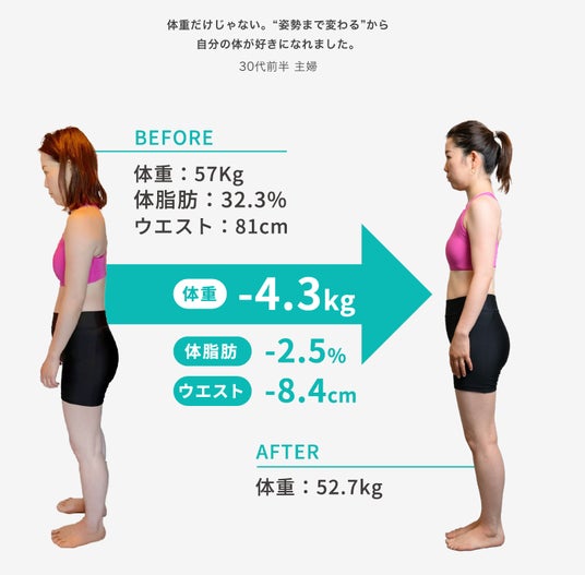 産後ジムに行ったり運動する時間もなく、産後太り解消どころか2年で+10kg太ってしまいました。「整体×運動でリバウンドしない体づくりができる!」と聞いて、育児で甘利時間が取れないけれど、一カ所で整体とダイエットができるならと思い迷わず体験に参加しました。初めての体験の日、まずはどんな体になりたいか等、丁寧にカウンセリングしてくれました。姿勢チェックをしてから筋トレスタート。久しぶりの運動でもペースを合わせていただき、安心して始められました。
