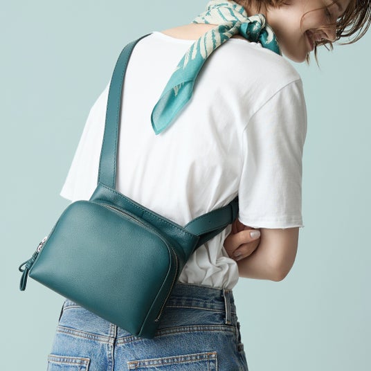 さらに、ベルト付け根の金具が360度なめらかに回転することで、ショルダーバッグとしても、ウエストポーチとしても、お持ちいただけます。