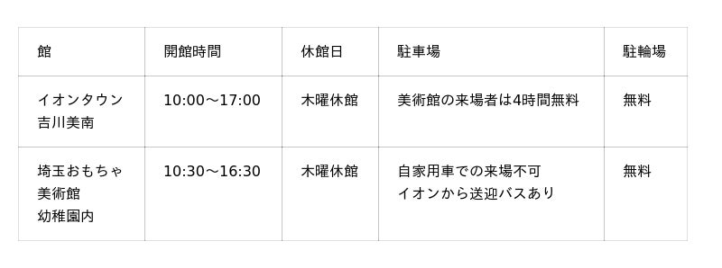 場所:埼玉おもちゃ美術館イオンタウン吉川美南 東街区内