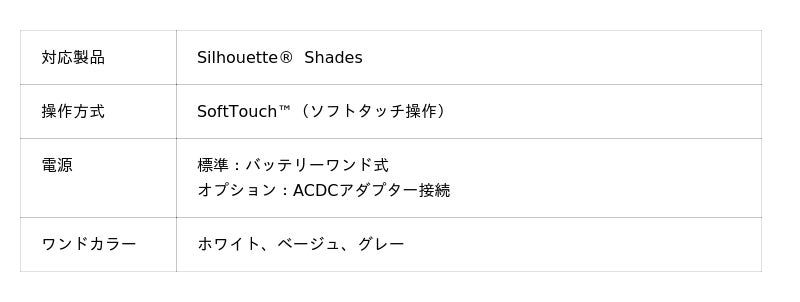 SoftTouch(TM)操作は、直感的なワンド操作でシェードを昇降させるコードレス仕様の操作方式です。ワンドを軽く上げる、または下げるだけでスムーズに昇降できるシンプルで快適な操作性を実現しました。また、マグネットによって本体とワンドが接続されており、万一ワンドに強い力や衝撃が加わった場合でも、簡単に安全に外れる安心設計となっています。小さなお子さまやペットのいるご家庭でも、より安全にお使いいただけます。