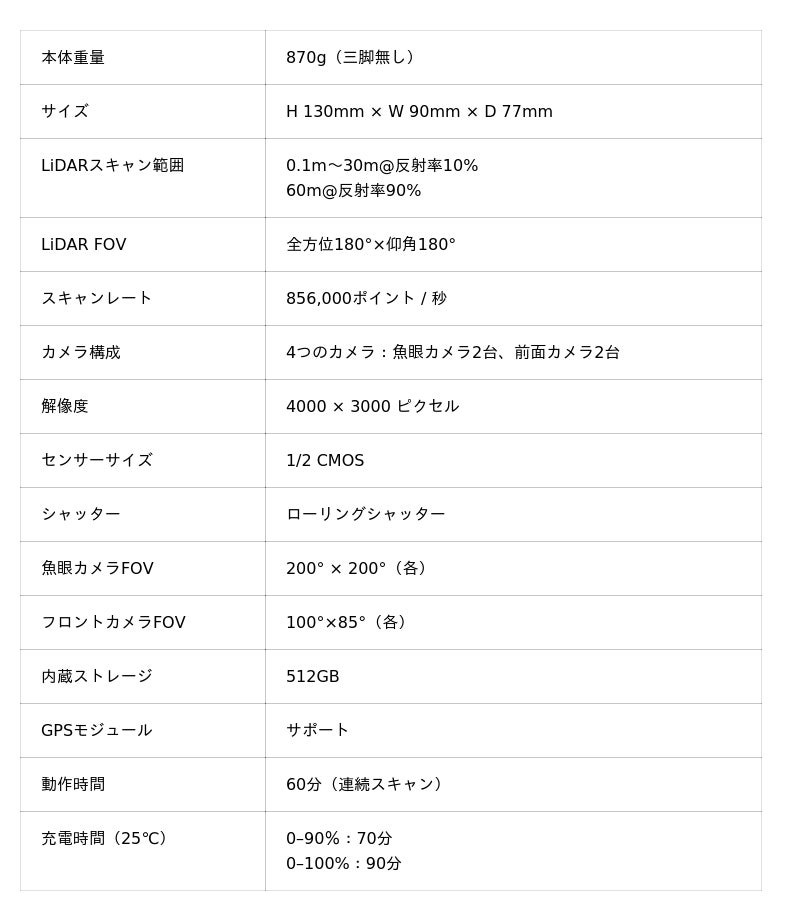 前面に搭載された2つの高精細カメラにより、対象物の細かなディテールまでしっかりキャプチャ。小物から建物全体、街区スケールまで幅広く対応できます。