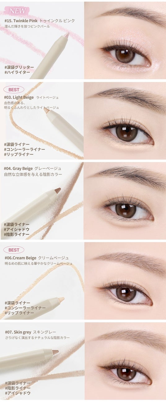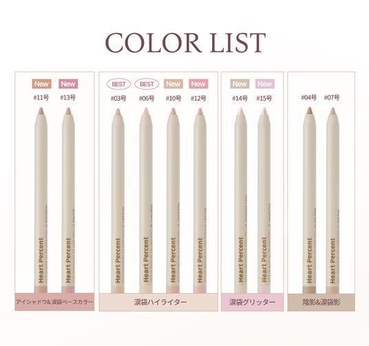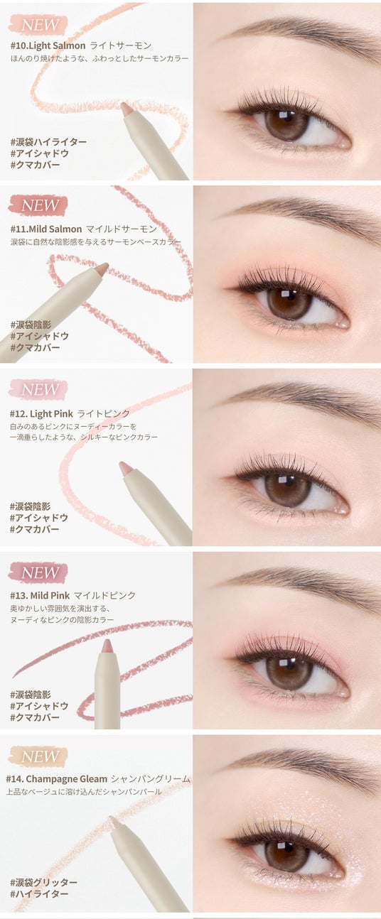 今回のリニューアルでは、涙袋メイクに最適なカラーラインナップを新たに取り揃え、より幅広いメイク表現を可能にしました。