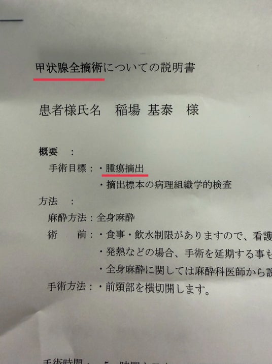 甲状腺全摘術に関する説明書
