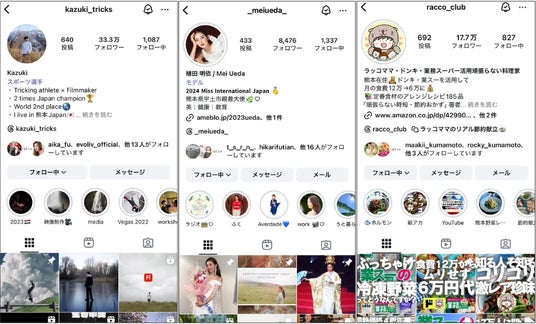 今回起用いたしますインフルエンサーは、トリッキング日本チャンピオン/世界2位のKazukiさん、2024ミス・インターナショナル日本代表の植田 明依さん、そして暮らしに根差したお役立ち情報で支持を集めているラッコママさんの3名です。
