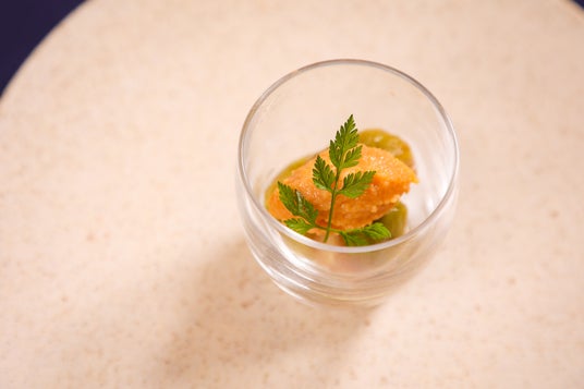 フレンチダイニング”Gilligan’s Island” 噴火湾産“生雲丹”と赤ピーマンムース フルーツトマトのジュレ3,267円