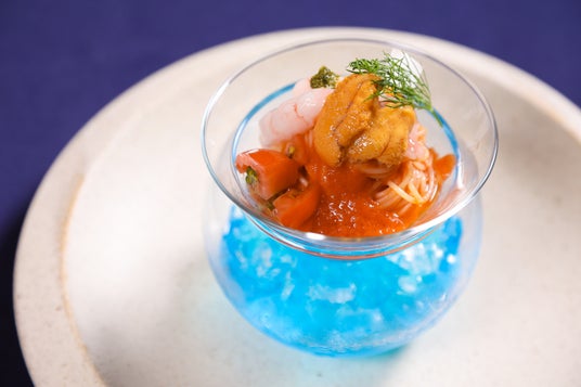 ピッツェリア”Cielo Stellato Windsor” 噴火湾産“雲丹”と甘えびの冷製カッペリーニ 海老のソース4,300円
