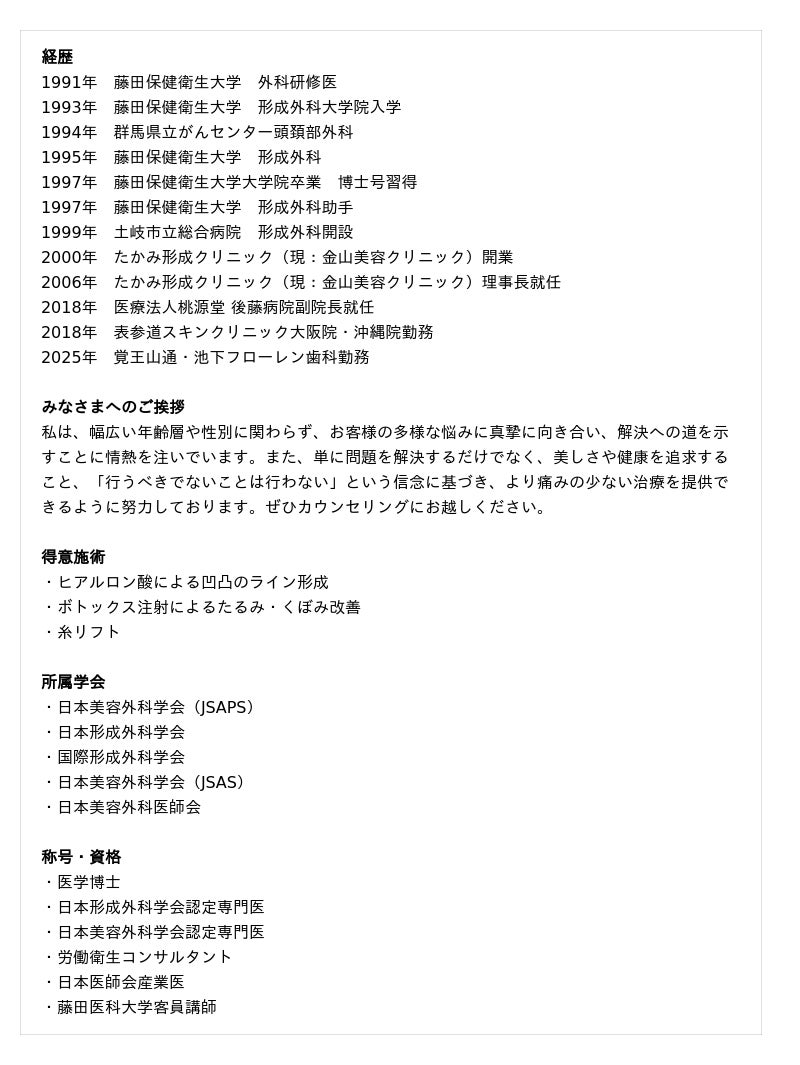 ■旧たかみクリニック(現:金山美容クリニック)高見薫医師が監修