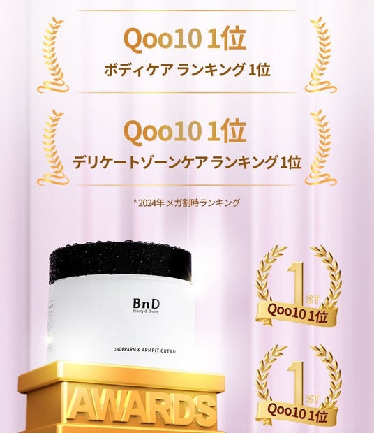 すでにQoo10では「BnDアンダーアームクリーム」がボディケアカテゴリでランキング1位を獲得しており、その高い効果と品質が多くの支持を集めています。