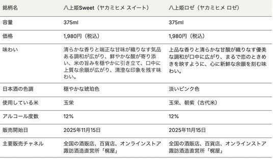 (2025年9月30日、鳥取) 鳥取県智頭町に蔵を構える諏訪酒造株式会社(代表取締役CEO:菅原健司)は、甘口の銘柄「八上姫Sweet」および「八上姫ロゼ」のボトルデザインとラベルデザインを全面的に刷新し、2025年11月15日より新たな装いで販売を開始いたします。