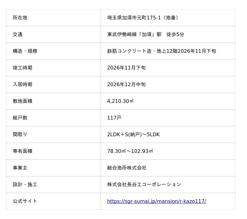 総合地所株式会社(本社:東京都港区、代表取締役社長:梅津 英司 以下、「当社」)は、新築分譲マンション「ルネ加須」(以下、「本物件」)のモデルルームを10月18日(土)よりグランドオープンしましたのでお知らせいたします。