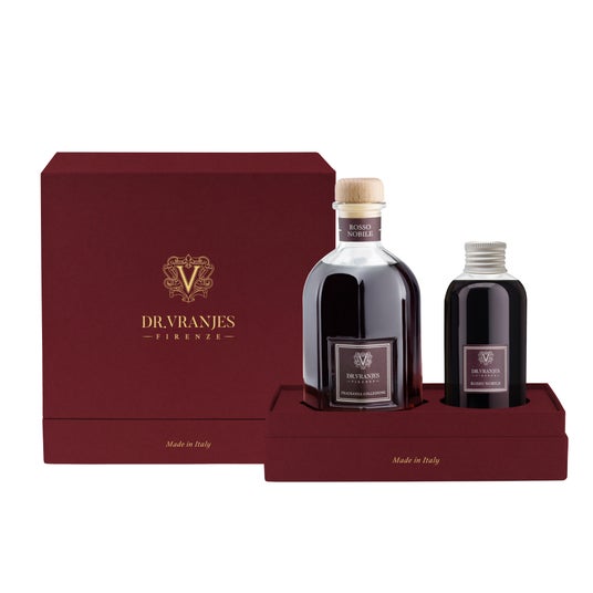 250mlサイズのディフューザーと詰め替え用リフィル(150ml)をクリムゾンレッドのボックスにセット。