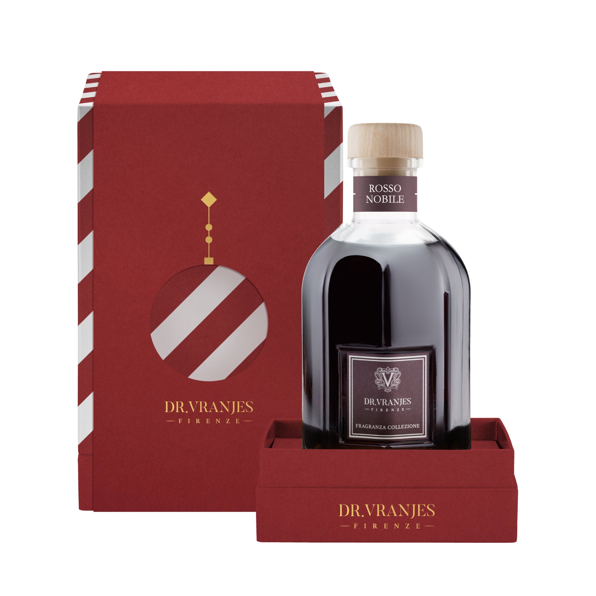 500mlサイズのディフューザーを、オーナメントモチーフが心躍るレッドボックスに。香りはブランドのアイコンとして人気を誇るロッソノービレ。