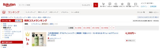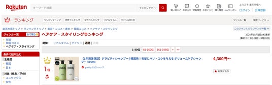 楽天市場 韓国コスメカテゴリー ヘアケア・スタイリングランキング1位