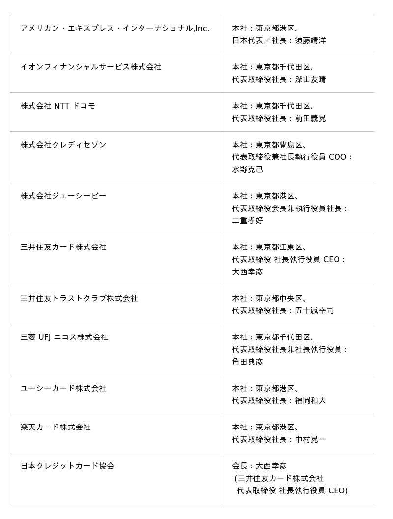 株式会社NTTドコモ、株式会社クレディセゾン、株式会社ジェーシービー、三井住友カード株式会社、