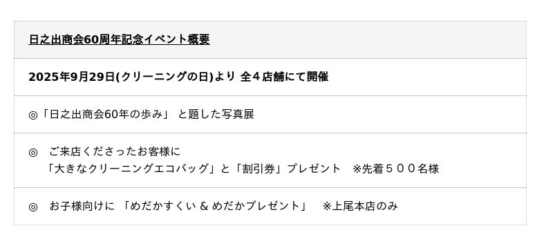 【1965年9月埼玉県上尾市で創業】創業60周年記念写真展を企画!9月29日(クリーニングの日)から開催中