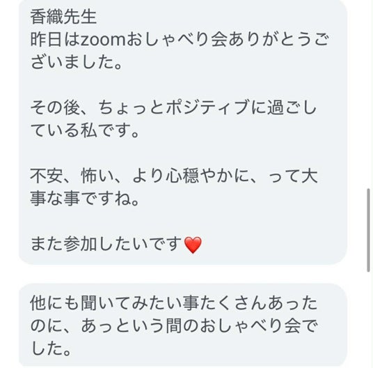 Zoomおしゃべり会 参加者さんの声