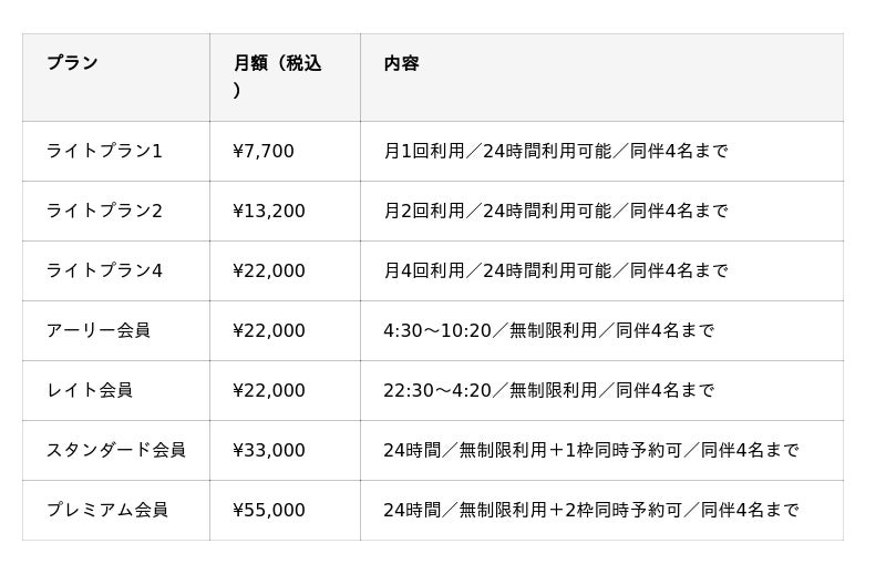 完全個室・完全予約制のプライベート空間を、いつでも自由に利用可能です。