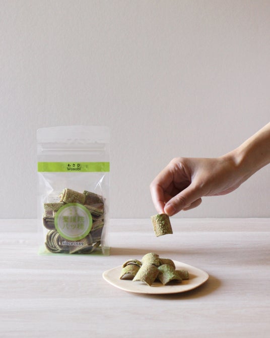 小袋シリーズとしては10年ぶりの新味として、「わさび」と「聖護院八ッ橋」を合わせた、わさび風味の八ッ橋を販売いたします。