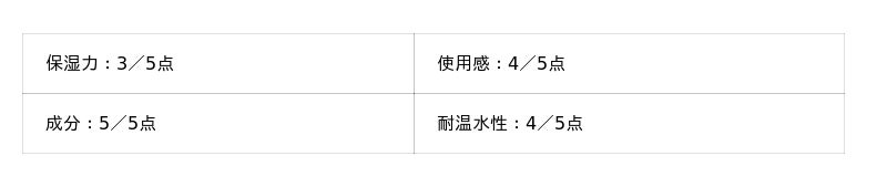 – 保湿力:5点満点