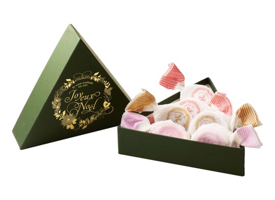 クリスマス限定のフランボワーズとヘーゼルナッツ、ショコラの3種の味わいの詰め合わせ。お口に入れるとほろほろ溶ける繊細な口どけを、ツリーをイメージしたクリスマス限定パッケージでお届けします。