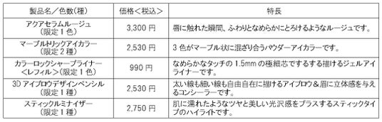 コンセプトは「春の空のような、夢見る色合いのメイクコレクション」。淡い色合いが混じり合う明るく穏やかな春の空をイメージしたコンセプトです。ラインアップは、3色がマーブル状に混ざり合うパウダーアイカラーや、唇に触れた瞬間にとろけるようになじむルージュ、肌にツヤと光沢感を与えるスティックタイプのハイライトなど6アイテムを用意しました。