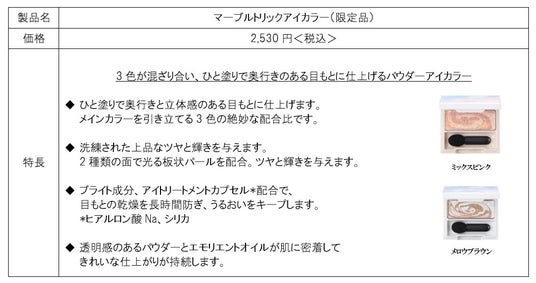 混じり合う色の効果で自然な立体感とほんのり華やかな表情を生み出しながら、スキンケア成分(保湿)の配合で乾燥が気になる春先にも肌にツヤを与えます。