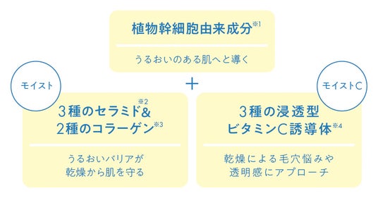 共通成分として植物幹細胞由来成分※1を配合するとともに、「リッツ モイスト パーフェクトリッチジェル」には3種のセラミド※2と2種のコラーゲン※3を、「リッツ モイスト パーフェクトリッチジェルC」には3種の浸透型ビタミンC誘導体※4を配合。スッとなじんでベタつかないジェルテクスチャーながら、乾燥する季節でも肌のうるおいをしっかり守ります。