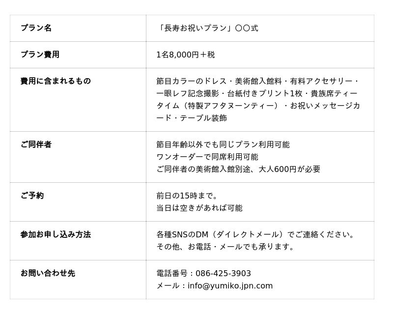 さらに、「年齢ではなく人生を祝う」をコンセプトとした、還暦・古希・米寿等の「長寿お祝いプラン」を拡充します。
