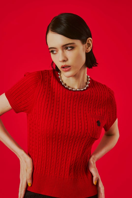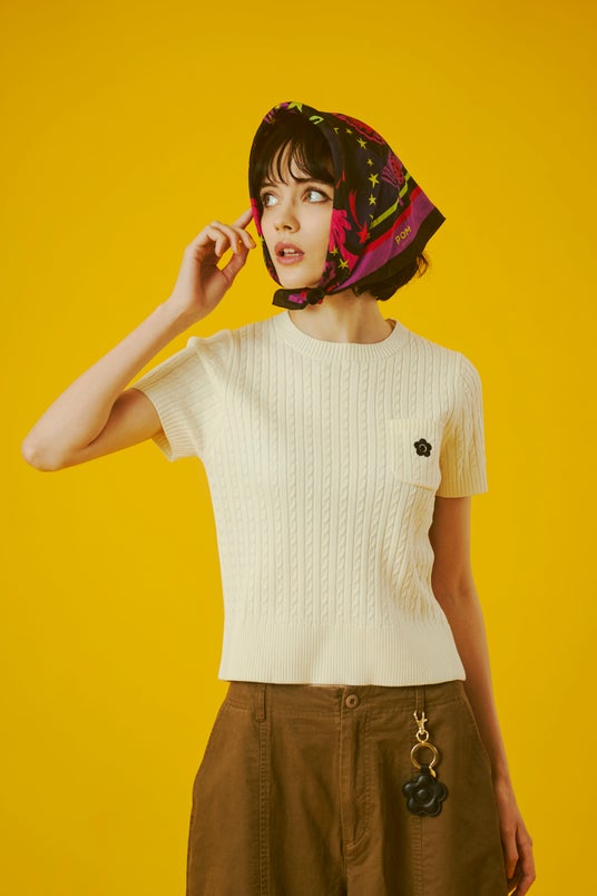 CABLE HALF SLEEVE KNIT ¥9,350(tax.inc)