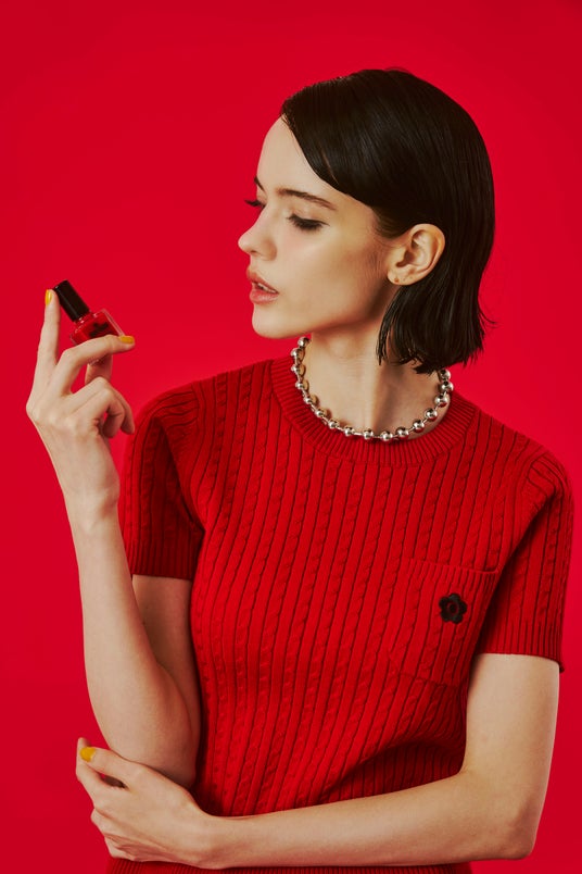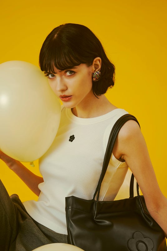今回のコレクションでは、イエローカラーとコンパクトサイズとビックシルエットのサイズがROSE BUD別注となるリンガーTシャツ、ケーブル編みでTシャツ感覚で着用できるレッドカラーがROSE BUD別注となるニットプルオーバーに加え、デイジー刺繡がアクセントのタンクトップ、ソフトな風合いのトートバッグ、デイジーモチーフのバッグチャーム、エナメルのデイジーパッチが目を引くポーチ、メタルのみで仕上げられたクリップとヘアピン、フェイクファーを使用したマスコットキーホルダーがラインナップします。