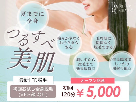オープン記念として、初回全身脱毛(顔・VIO除く)は5,000円(税込)で提供