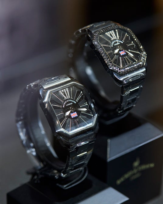 2階には、1789年に創業した世界最古のダイヤモンドメゾン「バックス & ストラウス」の日本初となるコンセプトショップがオープン。「フランクミュラー」のムーブメントを搭載する腕時計やジュエリーを中心に展開いたします。コンセプトショップのオープンを記念して発売される限定モデルの腕時計は、2種類展開されていて、こちらも数量限定となっています。