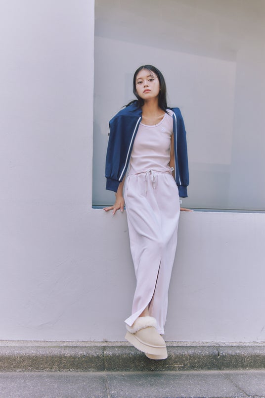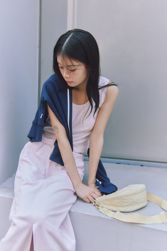 【パイピング入りのノースリタンクで今季らしいスポーティーなエッセンスをプラス】
