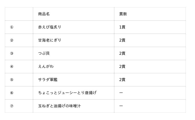 例えば、“今日はちょっと贅沢したい”“いろいろ食べたい”そんな気分にぴったりの、お得でうれしい組み合わせとして、『赤えび塩炙り』や『甘海老にぎり』、『えんがわ』、『つぶ貝』など、人気のネタを中心に、味噌汁や唐揚げなどのサイドメニューを組み合わせた7皿を「おすすめチョイス」としてピックアップ。満足感たっぷりのバリエーションがありながらも、いままでよりも130円(税込)もお得に楽しめる組み合わせです。さらに公式アプリ会員なら、クーポン併用で最大100円OFFに。