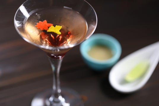まず最初の1品は味の変化が楽しめる当館のオリジナルカクテル、「愛でる紅葉~秋~」でございます。