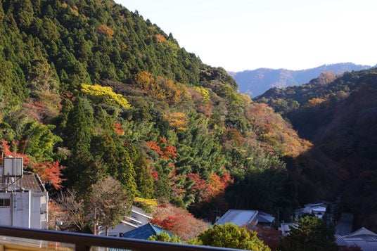 展望露天風呂から見える湯河原紅葉の始まり