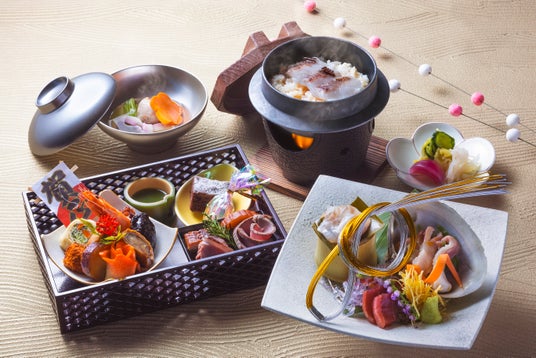 おせち料理・お造り・鯛釜めし・お吸い物・香の物のセットメニューをご提供