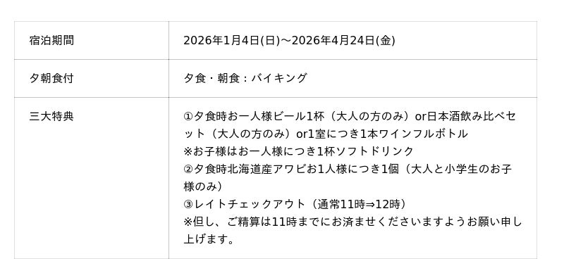 1月~4月のご予約 特別プラン